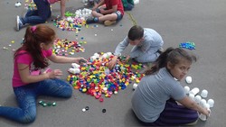 Ku-pakolás- kupakkék készítése az osztályok által összegyűjtött műanyag kupakokból. Az ideiglenes alkotások alapanyagait a védőnőknek adtuk át, hogy így is segítsünk a rászoruló családokon.